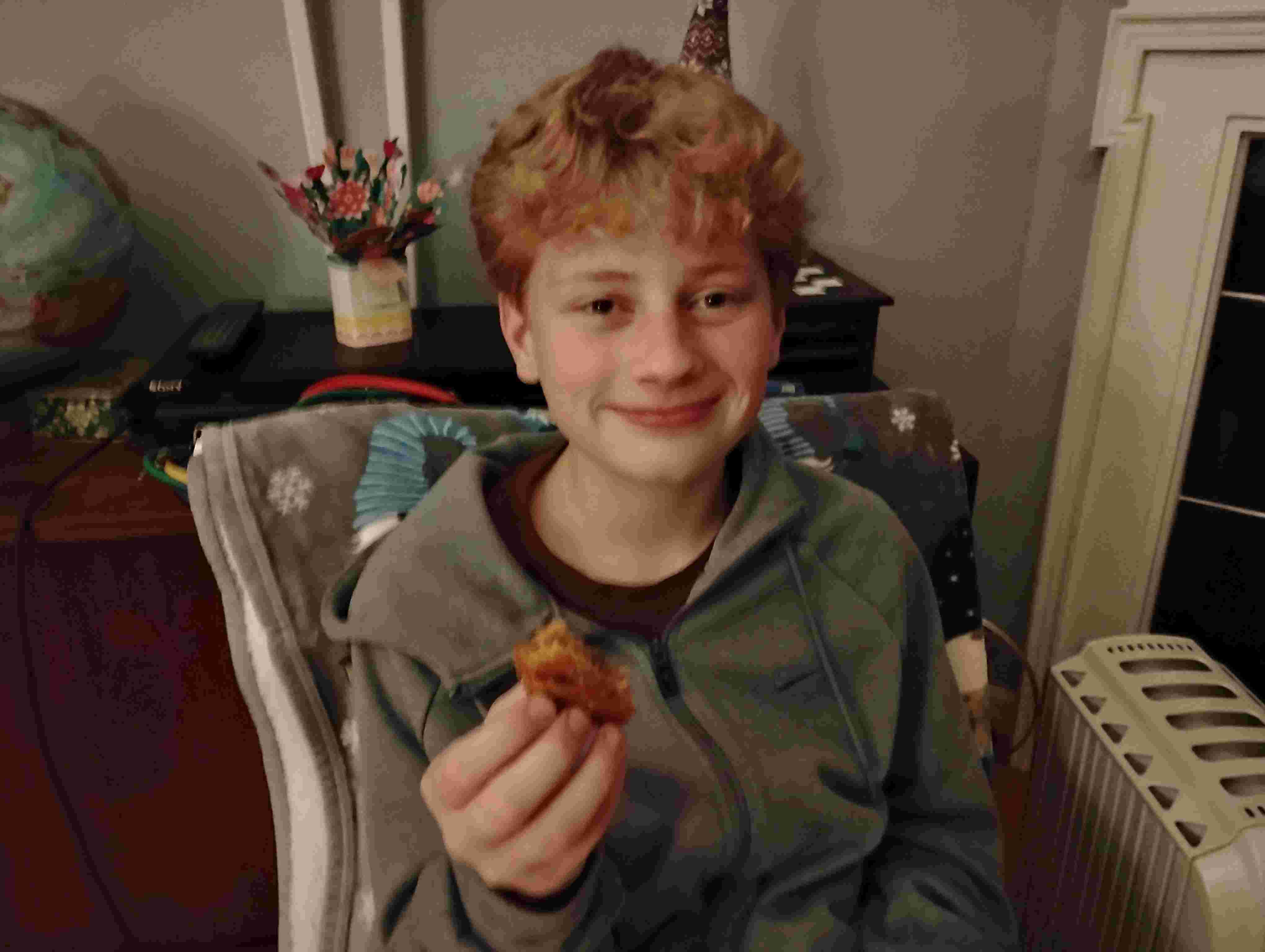 Shawn said she guessed the kitchen was a mess. “No,” said Logan, “I cleaned it all up!!”