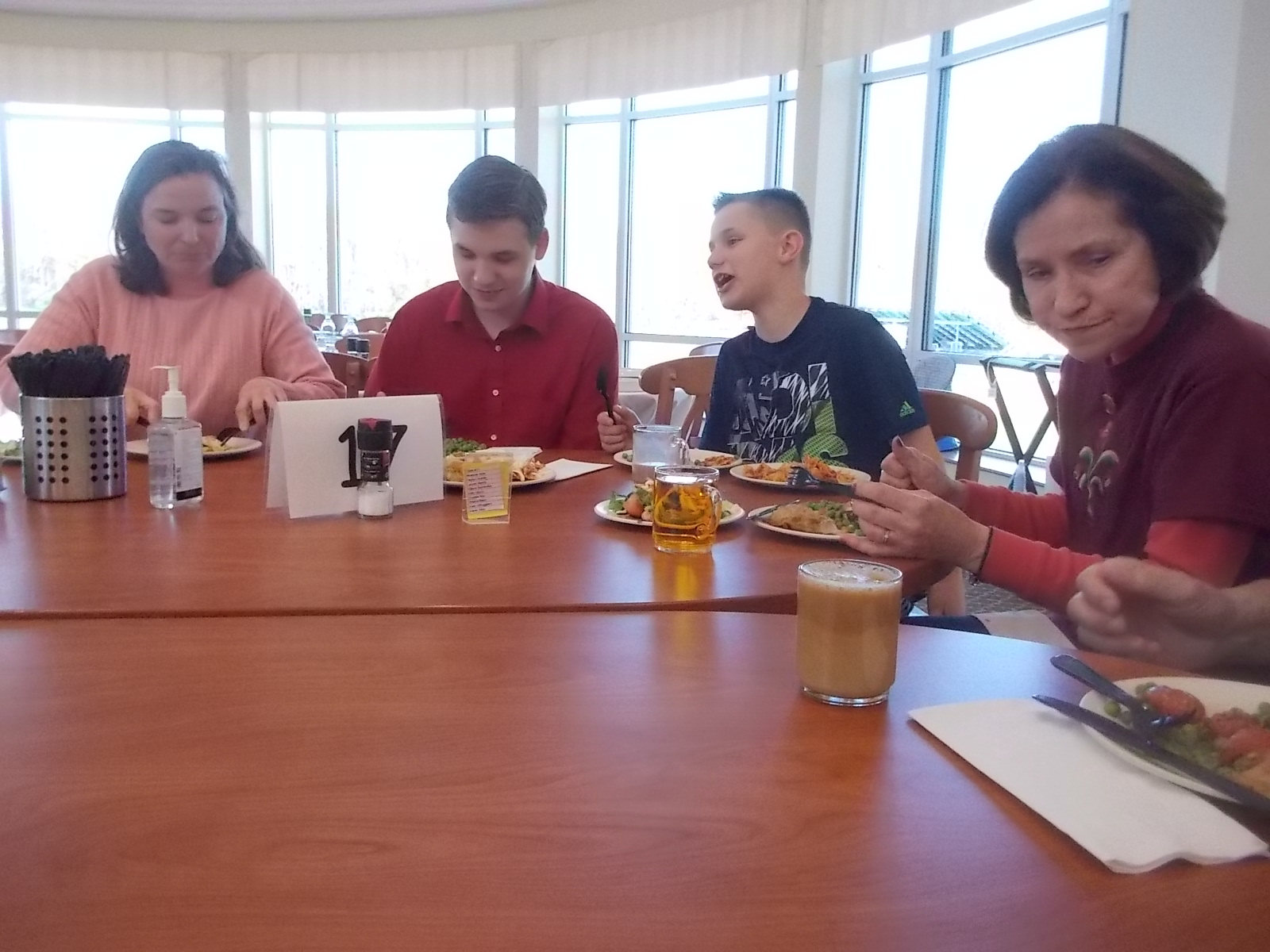 We had a wonderful time visiting the family at the Brook. It was my first time to eat in the commons — most impressed with the building and the food. We even had time to play outside on a perfect spring day.