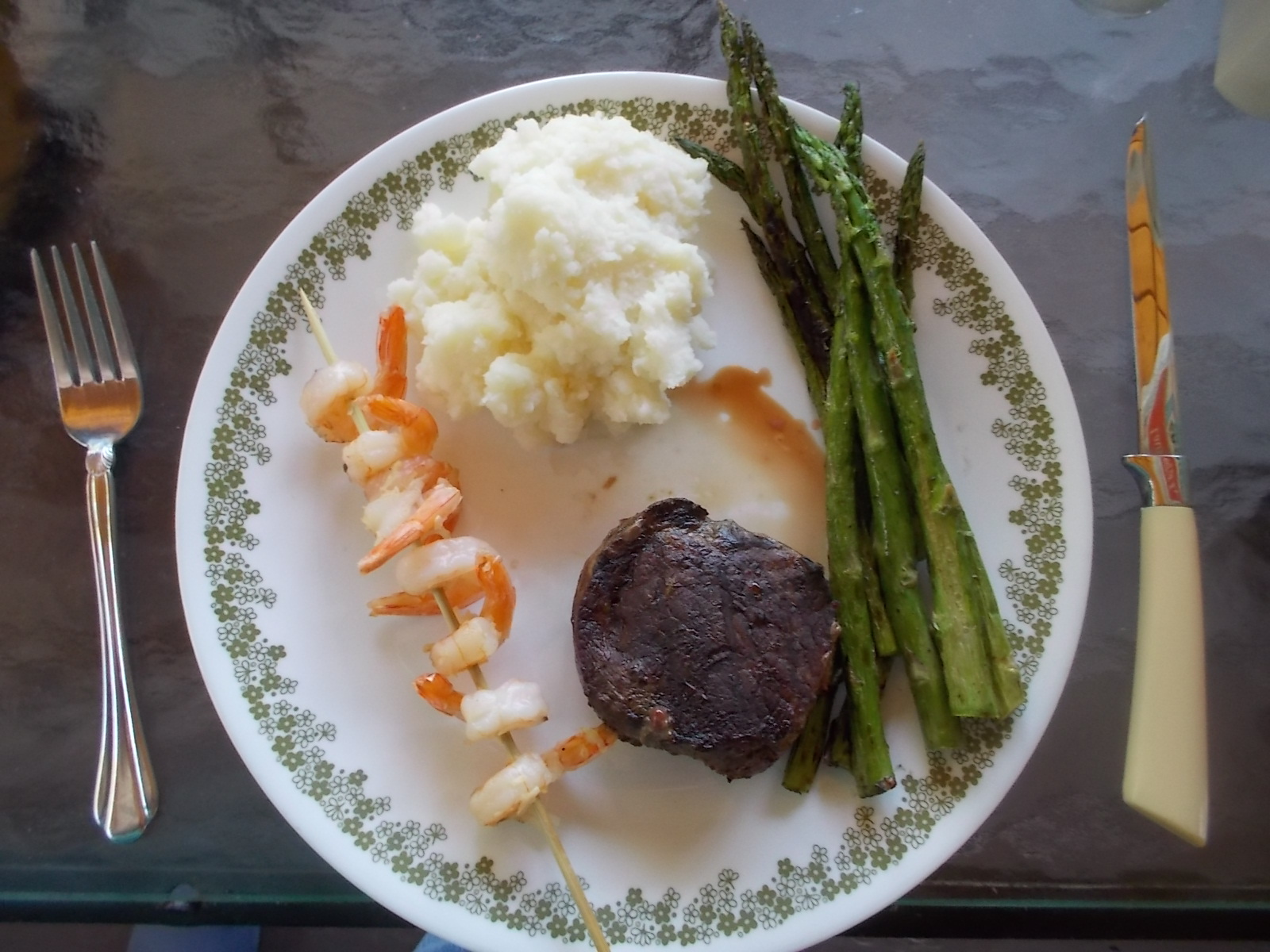 avor. $ stayed from Friday to Monday morning, cooking Mother’s Day dinner on the grill. What a feast! He prepared coconut shrimp, filet mignon, grilled asparagus, and mashed potatoes. We ate so much we just sat about napping and chatting the rest of the day.
