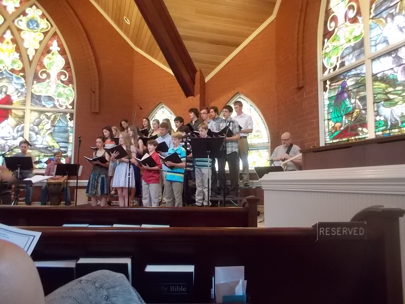 This afternoon neighbor Dennis came over to invite us to his youth choir concert. There were 10 young ladies and 11 fellows, a surprising mix. Often teen girls outnumber boy singers two to one. They had a good sound, on key and confident. Dennis seemed to sing with enjoyment, as they all did.
