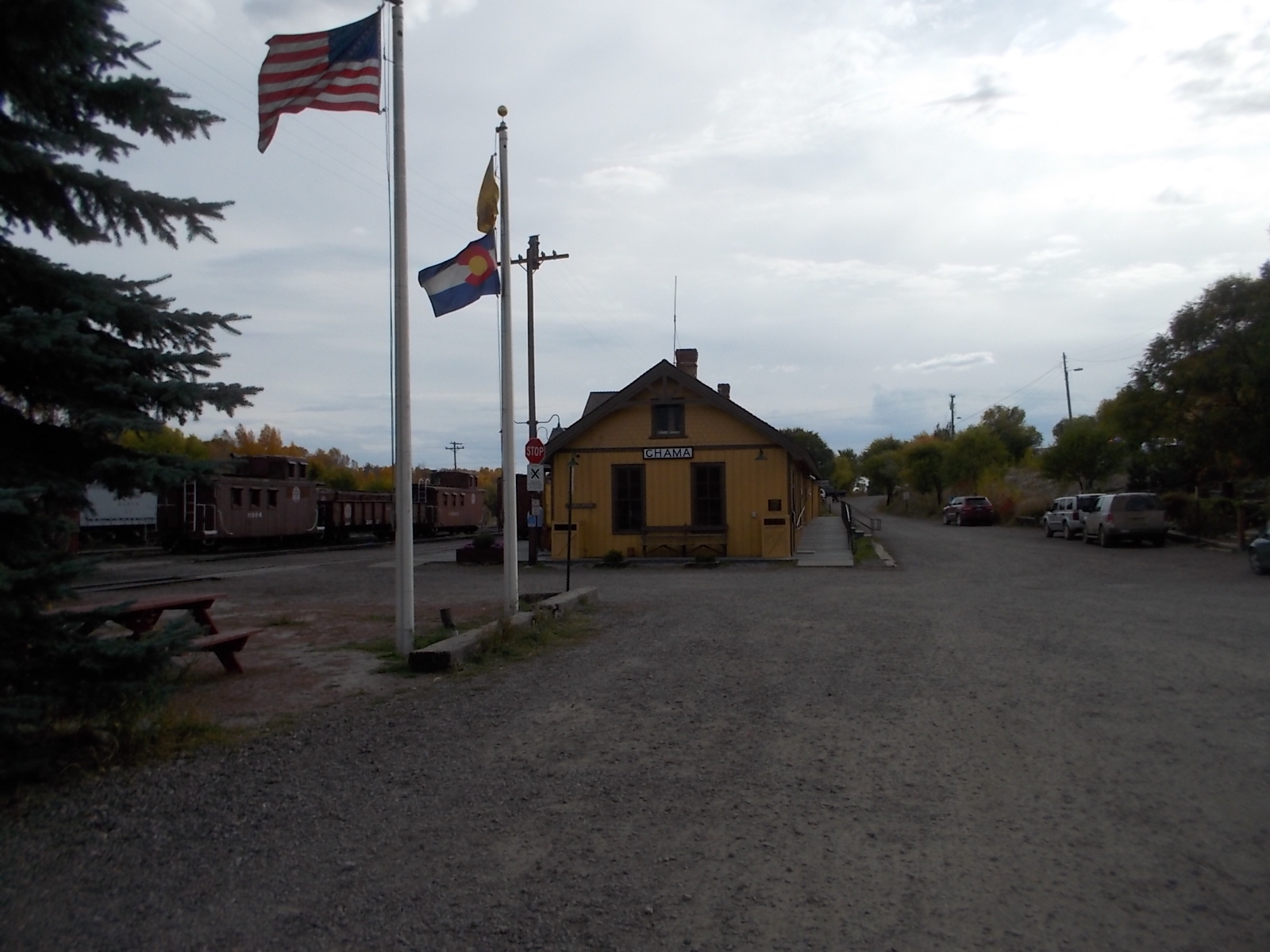 We threw our luggage in the inn and walked across the street to poke about the train station in Chama. I have no idea of the history of this place, but there is one steam train a day up the mountain. We walked through the yard, and John stayed to see the train come in while I ran back to the room and sent email messages to two of our children. We were hamstrung by poor internet service at the inn and no signal on my phone. Kate, Michael, and Lise found us on the website as we watched the crew begin switching cars for the next day’s run. That was really live streaming for our family.