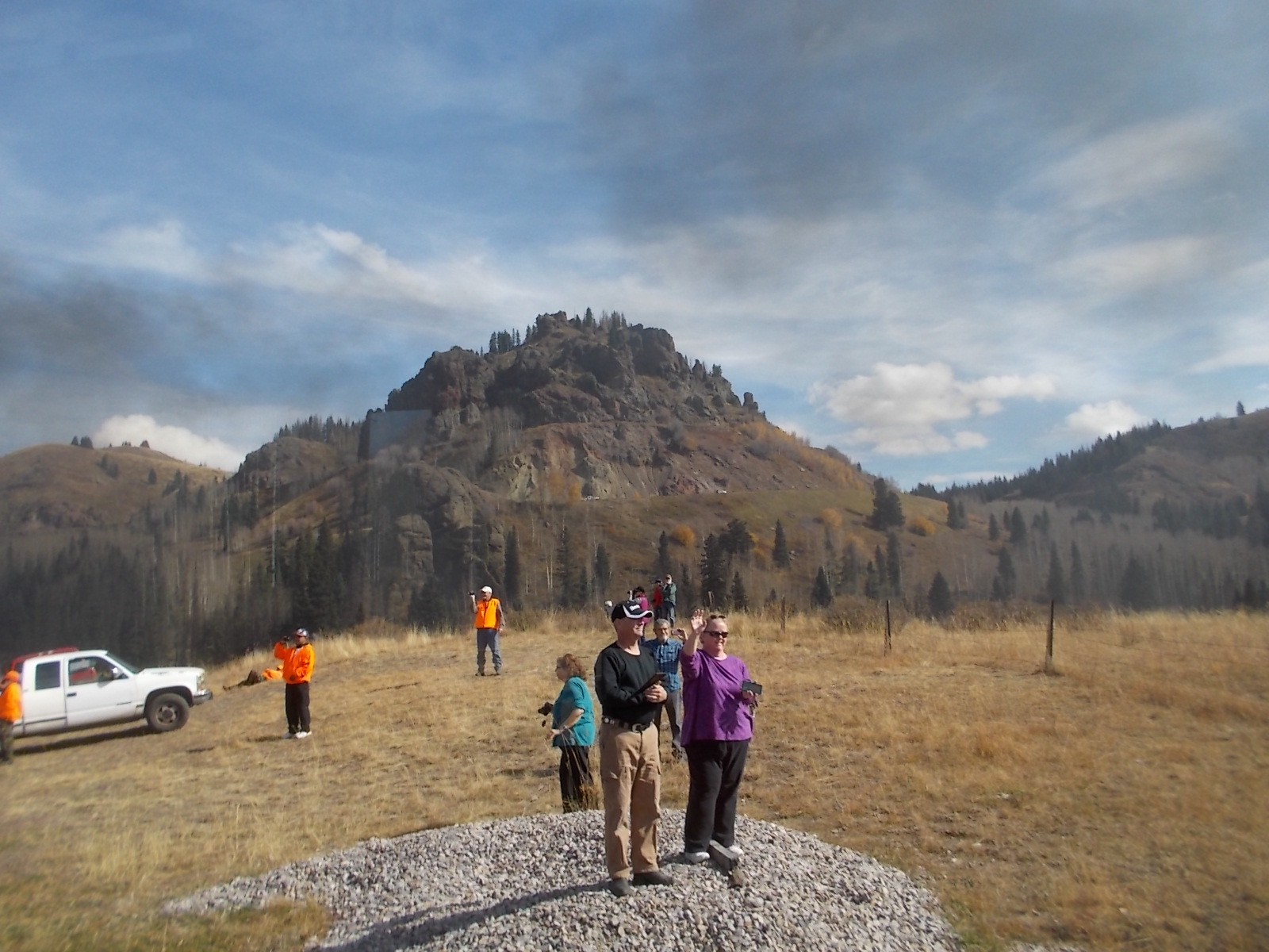 The most modern thing about this ride was watching the drone take photos of us. A train buff in a car sent the drone at several spots. I didn’t get a photo of the drone, but I did take one of train buffs watching us. A road came near the railroad in many spots, and there were always cars parked to watch the steam engines. The people jumped out of their cars, snapped photos, and rushed to the next viewing spot.