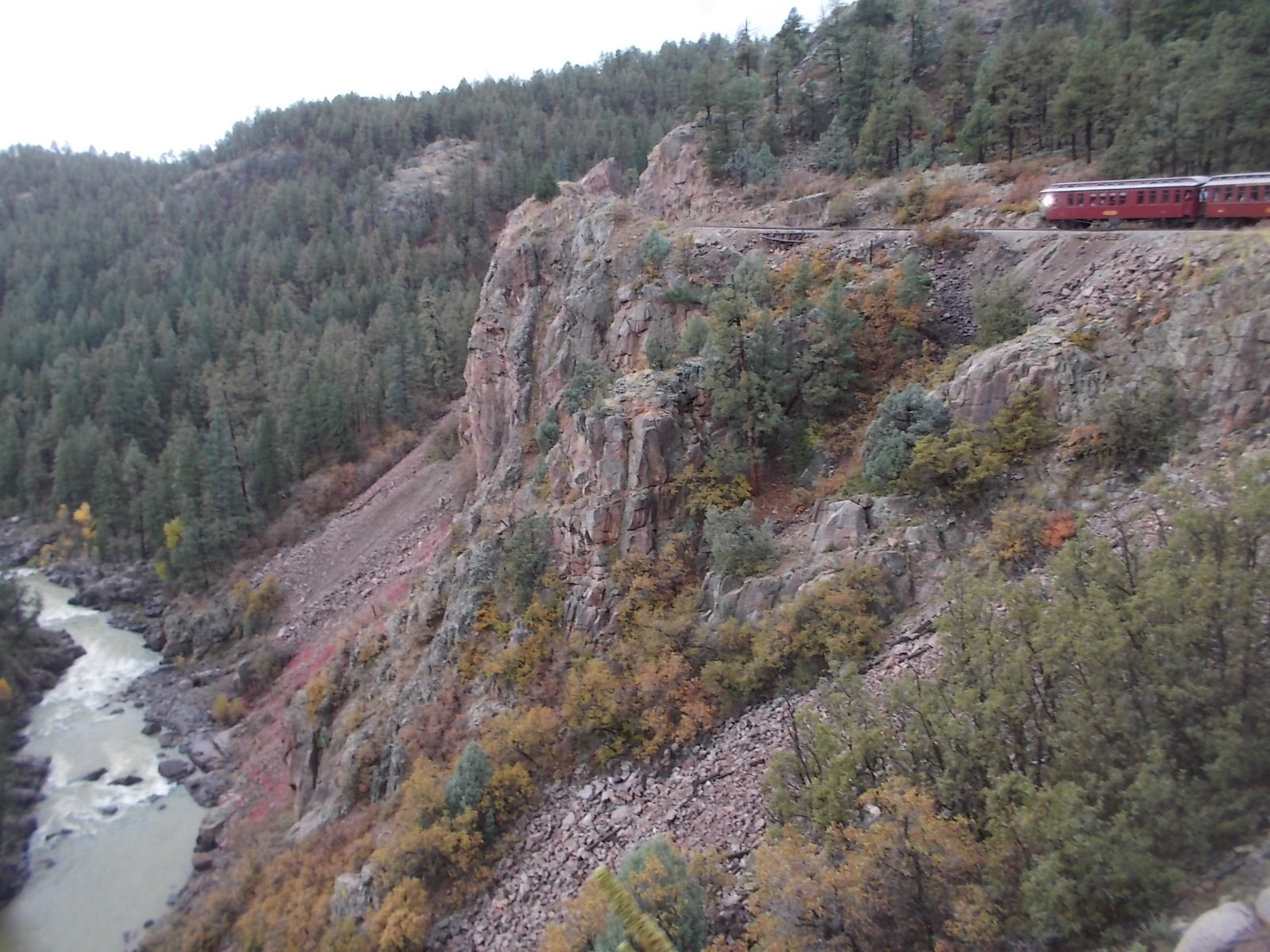The mountains were impressive, as was the rushing stream all along the route. That stream becomes the Animas River running through Durango. The peaks here were more rugged than ours. (What possessiveness!) Still, the Rockies had something special – snow covered peaks!