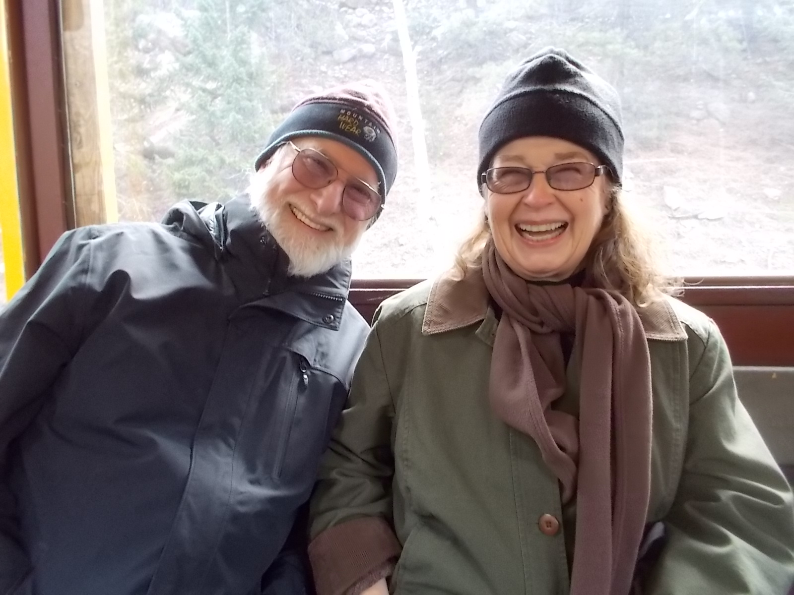 We rode a train, the Georgetown Loop. I’ll skip the history, because I don’t know it. I do know we bought tickets for the open car and feared we wouldn’t stay warm enough. We piled the car with hats, gloves, light wraps, and heavy coats. It was downright cold and very windy when we stood in line to board. Brrr! To our delight, the “open” car had Plexiglas windows and some heat. Families with young children had blankets in addition to winter coats, and they soon shed most of their layers. Since we were not totally consumed with staying warm, we could look out at the majestic mountains and tumbling stream.