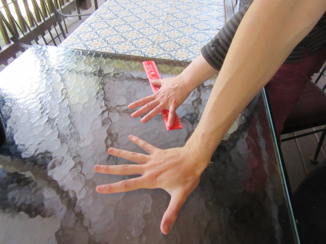 Earlier in the day, Nathaniel knew where to find a ruler when the subject was the width of a hand span. Kate’s hand on the ruler might be a bit smaller than mine. I envied Nate’s from the time he was 12 years old. Reaching octaves on the piano would have been so much easier if I’d had an extra half inch. Now his hand spans a whopping 9.5 inches. Can you imagine what it would be like, instead of stretching, to contract your hand to fit an octave???