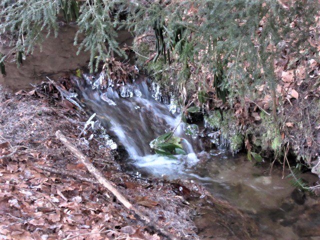 Because temperatures were in the teens at night, ice formed near the little stream close to our house. I thought the ice looked like jaws. We walk over the stream most days, and I always look at it. In a dry summer, the stream is reduced to a trickle. Thanks to plenty of rain this season, it is flowing well.