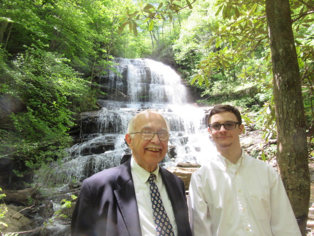 After church on Sunday we went to Pearson’s Waterfall near Tryon. I was thinking of grandson Nathaniel, knowing he was flying back to NC after having competed in the J&W Iron Chef event. A quick text brought a reply; he was in the airport waiting for his flight. David agreed to pose by the stream on the way up to the falls, and we sent the photo to him. On the way down the mountain, we lost all bars, but we were together in spirit.