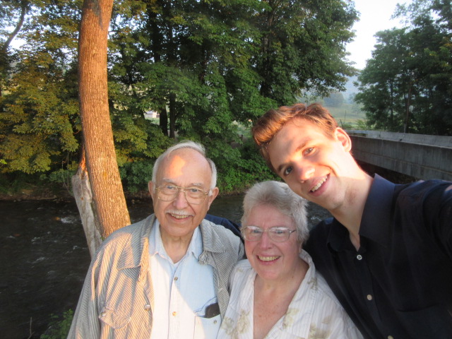 We were opening the front door to go walking when Nathaniel appeared in the hall. He is an early riser and walked to the creek with us. His long arms made this selfie easy.