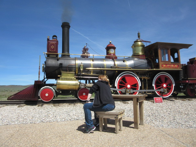 I remember seeing the pictures of those two trains and the excitement over the big 150th anniversary celebration – you are lucky you missed the crowd. You sure get a round and visiting lots of people. 🙂