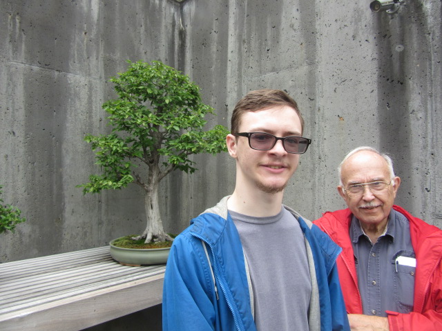 Our first visit to the Asheville Arboretum was delightful. Grandson David and I took an inordinate amount of time looking at the bonsai trees. I have seen miniature trees inside, but these were all outdoors. My favorite photo, with David included, was one that looked like a dish garden. I wanted to shrink myself and sit on the garden bench.