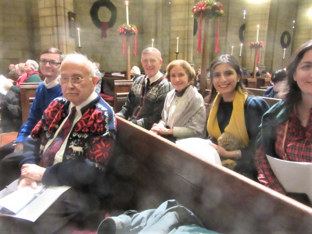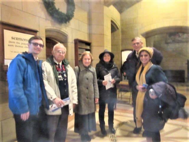 Even the drive into Manhattan was exciting, but I’ll not share the distant photos or the shots of buildings that are ho-hum to many. We posed in the entrance of St. Thomas Episcopal Church on Fifth Avenue – grandson David, John, sister Barbara, Sophie, brother Thom, and Sara. Sophie lives in Barbara’s and Thom’s home, and her cousin Sara is visiting for the Christmas break. This was Sara’s first visit to New York.