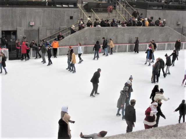 I took David’s face with the trunk of the tree to show how large the tree was. Santa Claus was skating at the ice rink in front of the tree. The skaters and crowds were enjoying him.