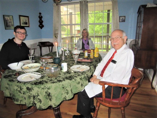 Neighbors Connie and Marla came the day after Easter. The big storm passed through during the night, resulting in tornadoes through much of the South. Our area was spared. Despite severe flood warnings, Jonathan Creek stayed in its banks. We had our dinner on the back porch with plenty of space between families.