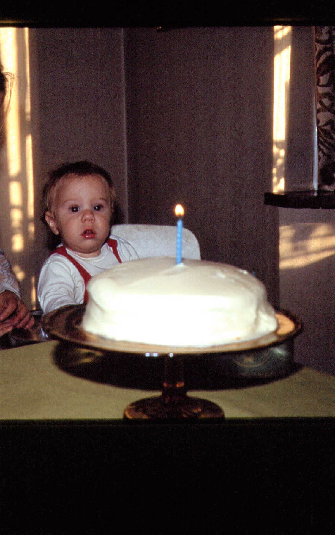 Yesterday was son John $pencer’s birthday. I used several of the photographs from his first birthday 40 years ago in a blog post, but I didn’t use the one showing him with his birthday cake. I liked the-deer-in-the-headlights pose.