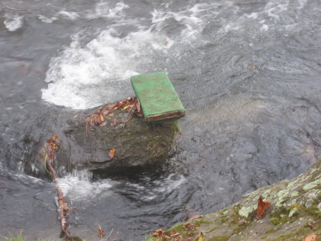 The big rock in the creek often snags branches, but this time the catch looked like a board covered with cloth. Unless someone moves it, the board will stay there until the next heavy rain.