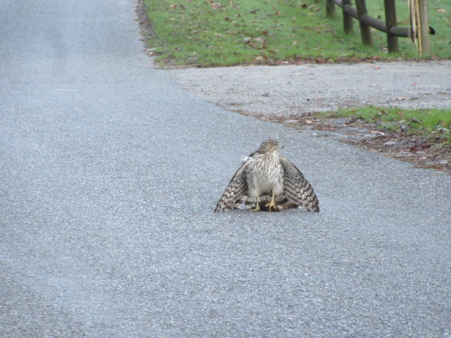 Odd they were just sitting there on the road like that. Those Cooper’s Hawks are what took my house squirrels and circle over the Park now looking to make my furry friends their prey. I saw one yesterday at the Park when I was walking. It had a huge body and wingspan as it flew overhead.