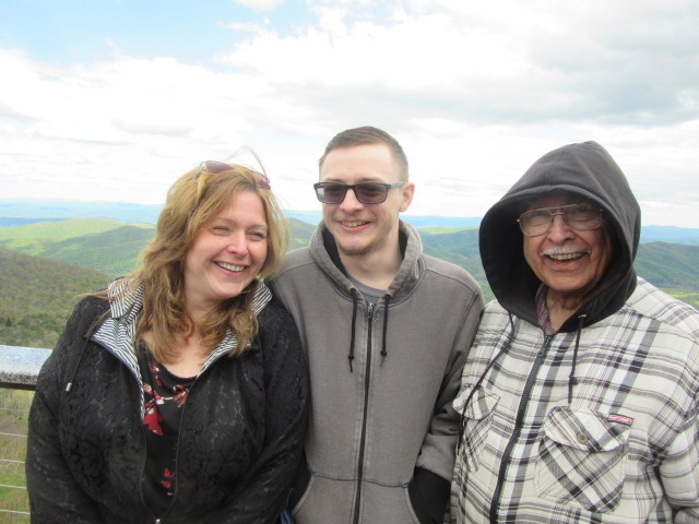 Four of us were free on grandson David’s day off. We celebrated by having lunch at the Pisgah Inn on the Blue Ridge Parkway. After eating, we went outside to the observation deck to see the mountains stretched out before us, or in this case, behind us.