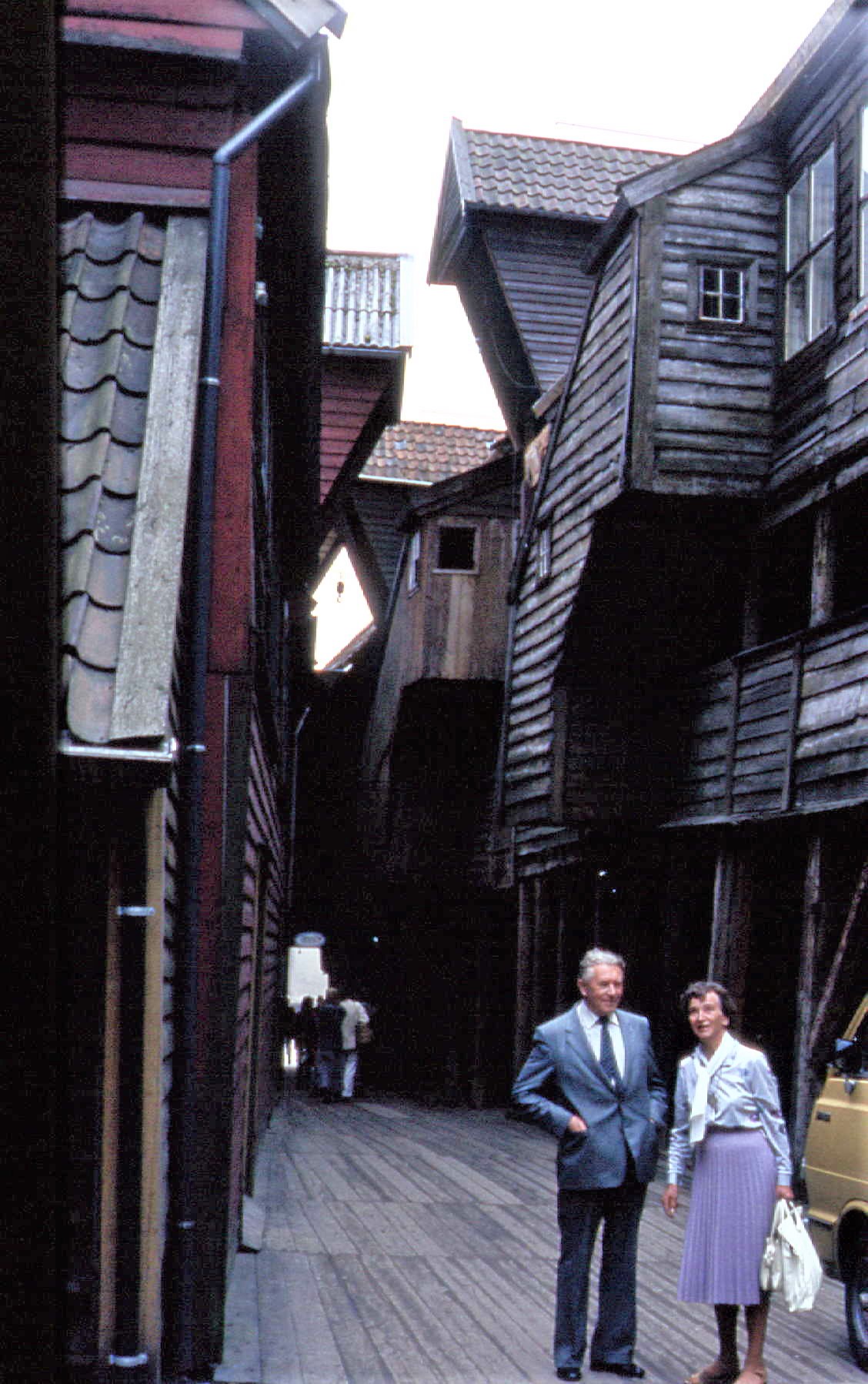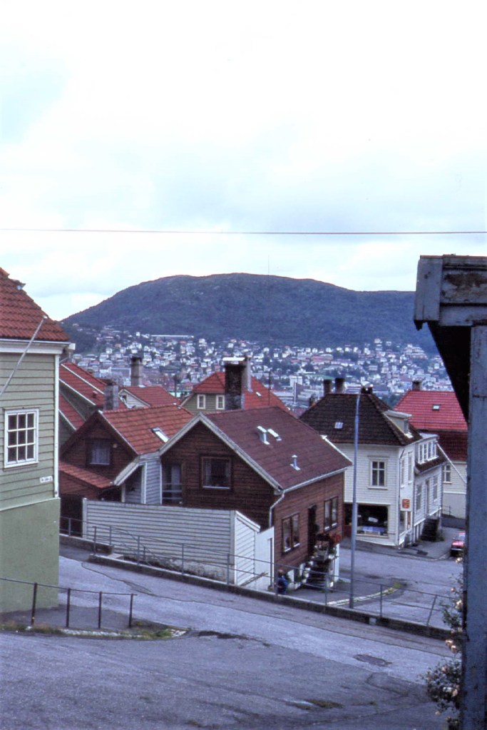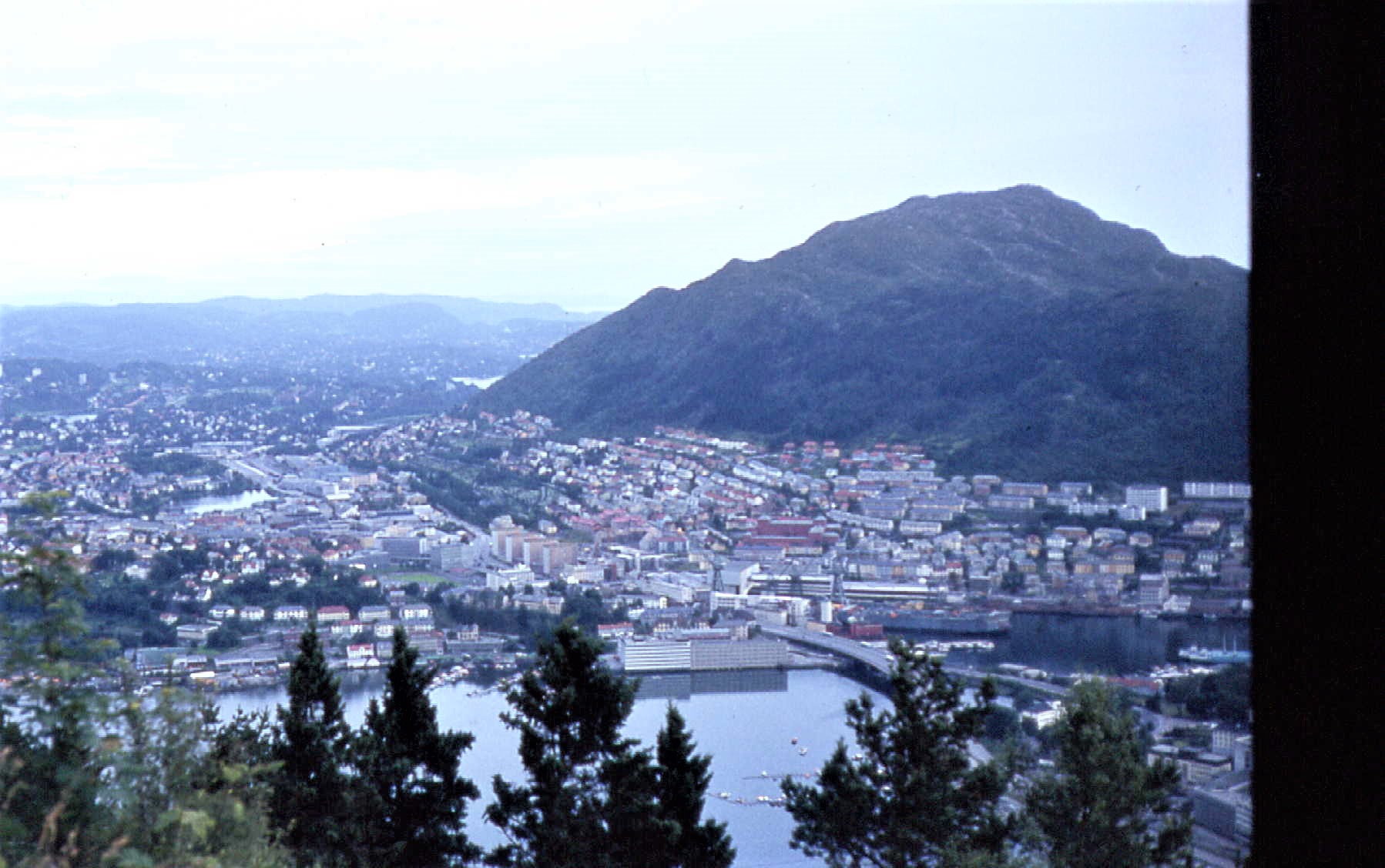 We all went on the funicular train up the mountain above Bergen. Four went to see Christina Onasses’ yacht in the harbor; Kate, Hildur and I went to Bjarne’s house to wash dishes.