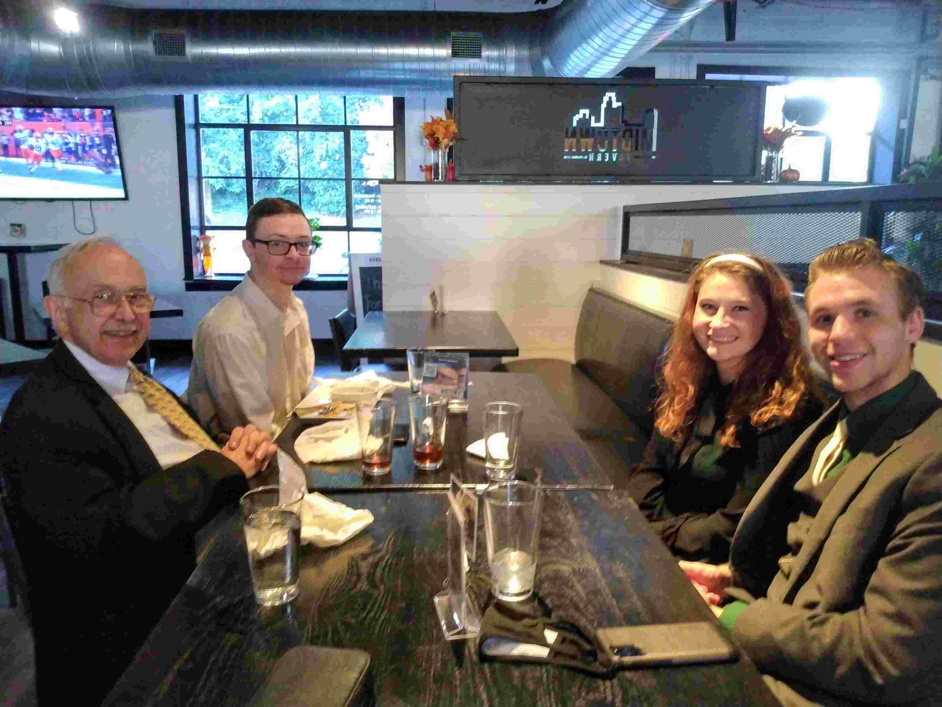 We hadn’t seen grandson Nathaniel in ages. On Sunday, John, David, and I drove to Charlotte and had dinner with him and friend Sarah at the restaurant of his choice. Sarah is from North Carolina and is studying hotel management. Conversation was lively and so much fun. The portions were generous, but that didn’t stop every one of us from cleaning our plates.