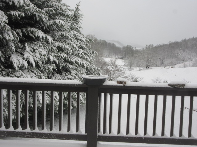 North Carolina snows are often beautiful and disappear without freezing on the roads. Ours came on January 3. I liked the margarita-looking birdbath on the deck and Sadie’s exploring a snowman on our morning walk. She growled, backed away, ventured forward, and finally sniffed the white alien.