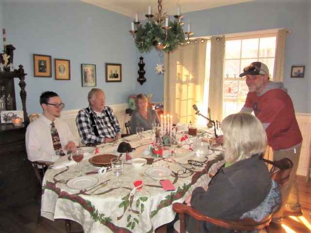 Christmas dinner was relaxed for everyone. I was glad son John $pencer took a video of the flaming Christmas pudding. In England 40 years ago, neighbor Gillian gave us one she had made and included the recipe. I still have that recipe in her handwriting and use it every year.