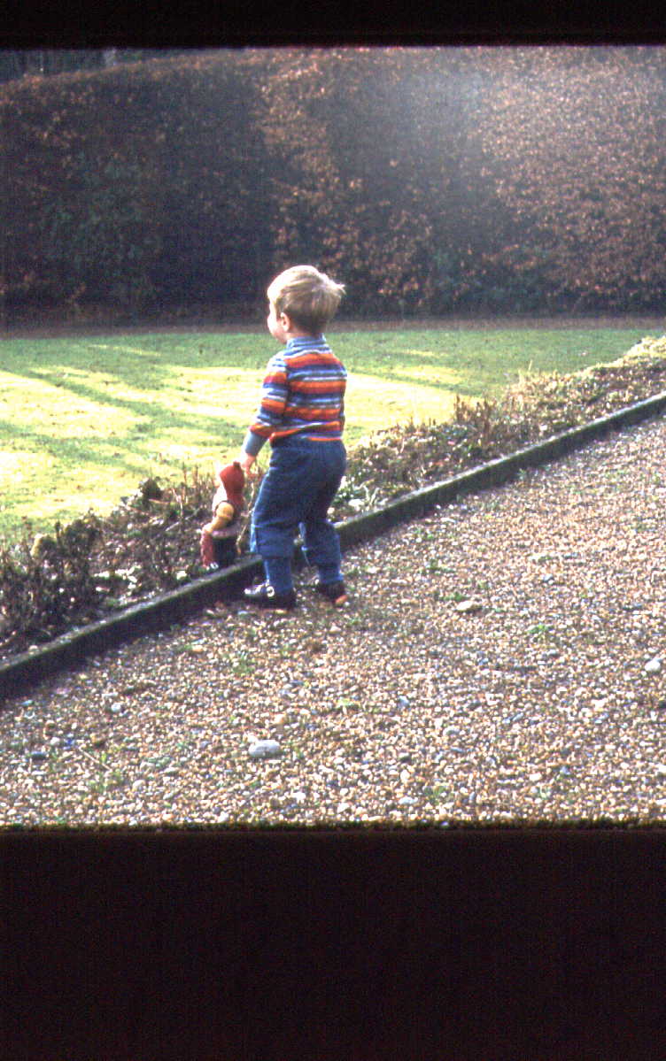 [There were no photos linked to this letter, so I’m adding one of $ in the garden with the gnome. He loved the statue and probably talked to it.]