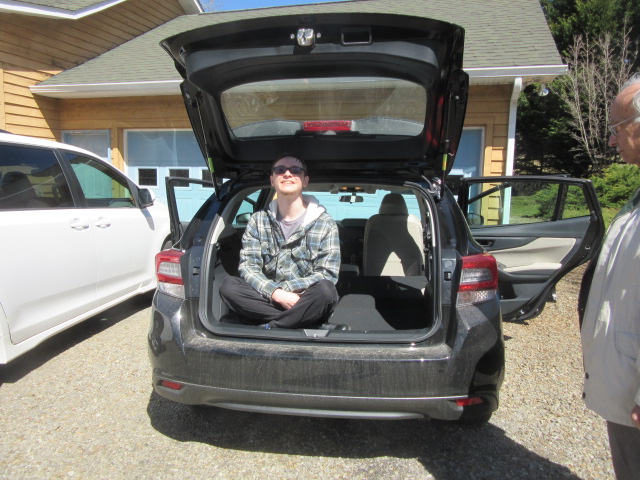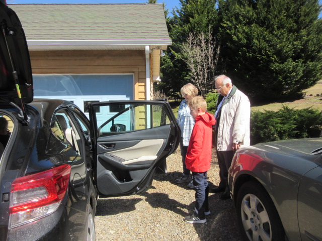 Grandson David has enjoyed his new car, getting used to the way it handles on the road and exploring the bells and whistles. On David’s first day off after getting it, John went outside with him to admire it and see its special features.