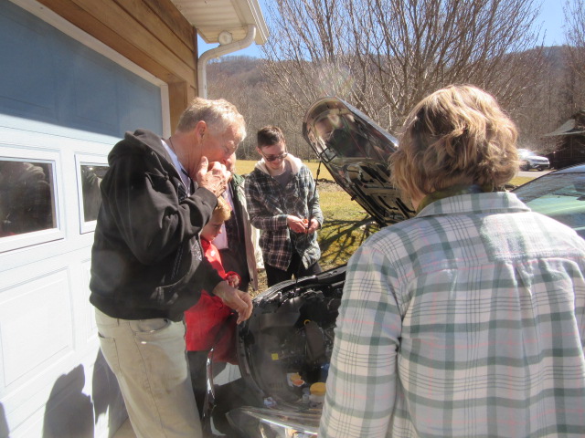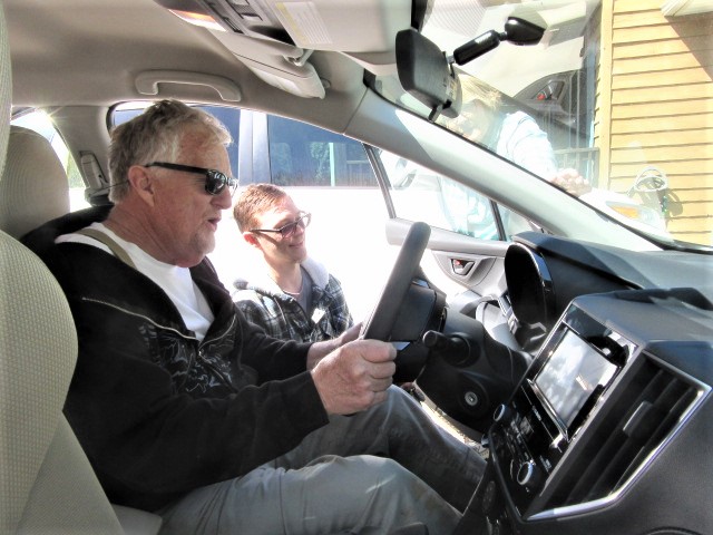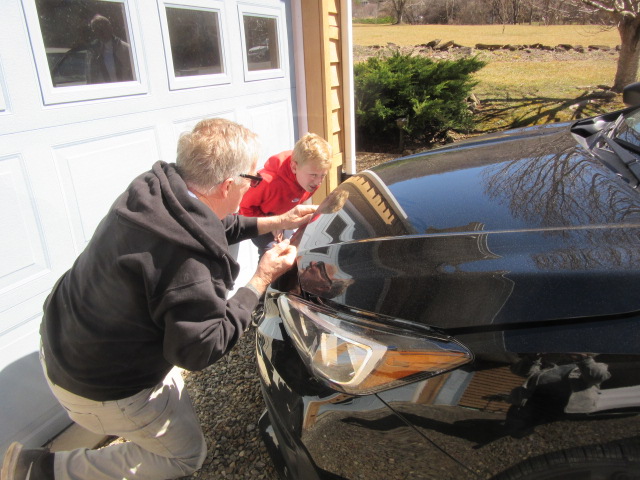 Just then a truck pulled into our driveway, and Shawn, Bob, and Logan hurried to inspect the car with us. They looked at the inside as Bob sat behind the wheel, all the while saying how great the car is.