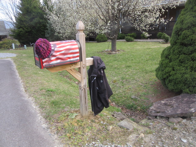 I know it’s Spring when I look at the thermometer, throw on appropriate layers, walk outside for a while, and shed clothing as needed. That’s why I had a long-standing agreement with Connie and Marla for hanging a jacket on their mailbox near the stop sign. After they moved, I asked for the same permissions from Harmony and Lise across the street. This week I pulled off the hat and jacket before reaching the end of our driveway. No special permission needed!