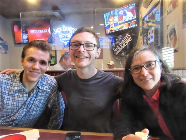 On grandson David’s day off, we drove to Charlotte to spend a short time with grandson Nathaniel. What a wonderful visit we had! Daughter Kate had not seen Nate’s apartment, his first place after being at university. David was getting the kinks out after being scrunched in the back seat of the car.