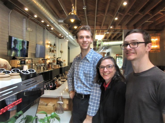 The youngsters posed after Nathaniel helped us order coffee, and he sat with us until it was time for him to clock in.