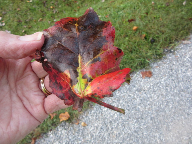 I brought home four photos from my walk this morning. I hadn’t taken many steps when I spotted a very colorful leaf. How appropriate that this is the first day of autumn!