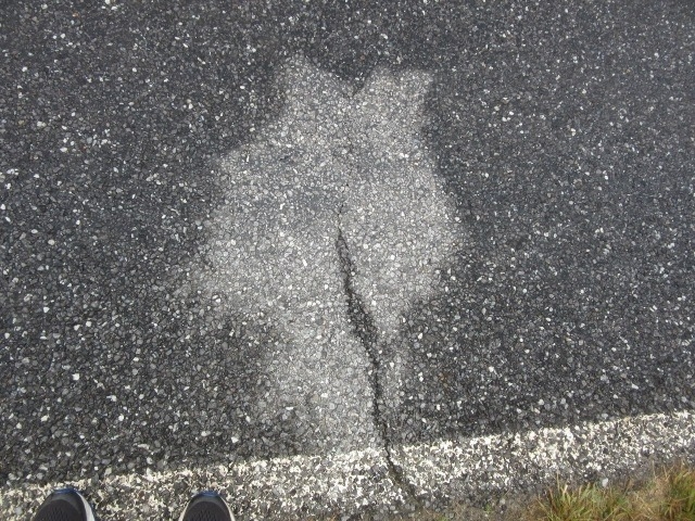 Near the firehouse were bits of road art. With a little imagination, I could see white cats on a gray road. Can you see the cats or something different?
