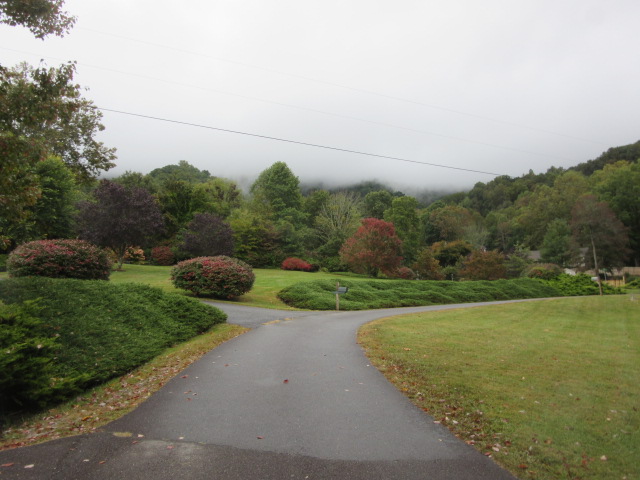 I began walking, having my mind set on finding beautiful or unusual things. It wasn’t far from the front door that I noticed leaves beginning to turn red. Low mist sat on the mountain, making it look like a normal, rather flat neighborhood.