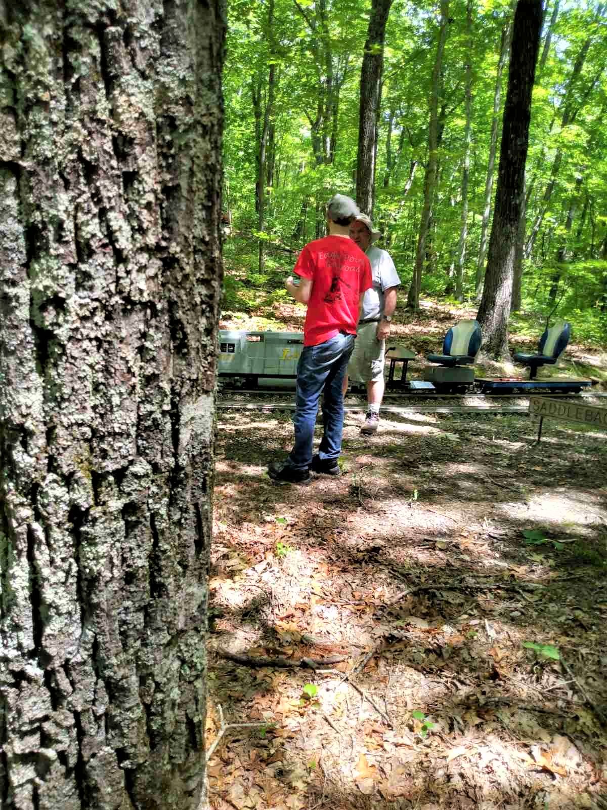 John didn’t have many photos taken at the train club, especially ones with people in them. Most are like those below, pictures showing progress on track work. He loved working with the tracks, both laying out new ones and repairing old ones. If he were looking at these shots right now, he could tell you exactly where they were taken on that five-mile layout.