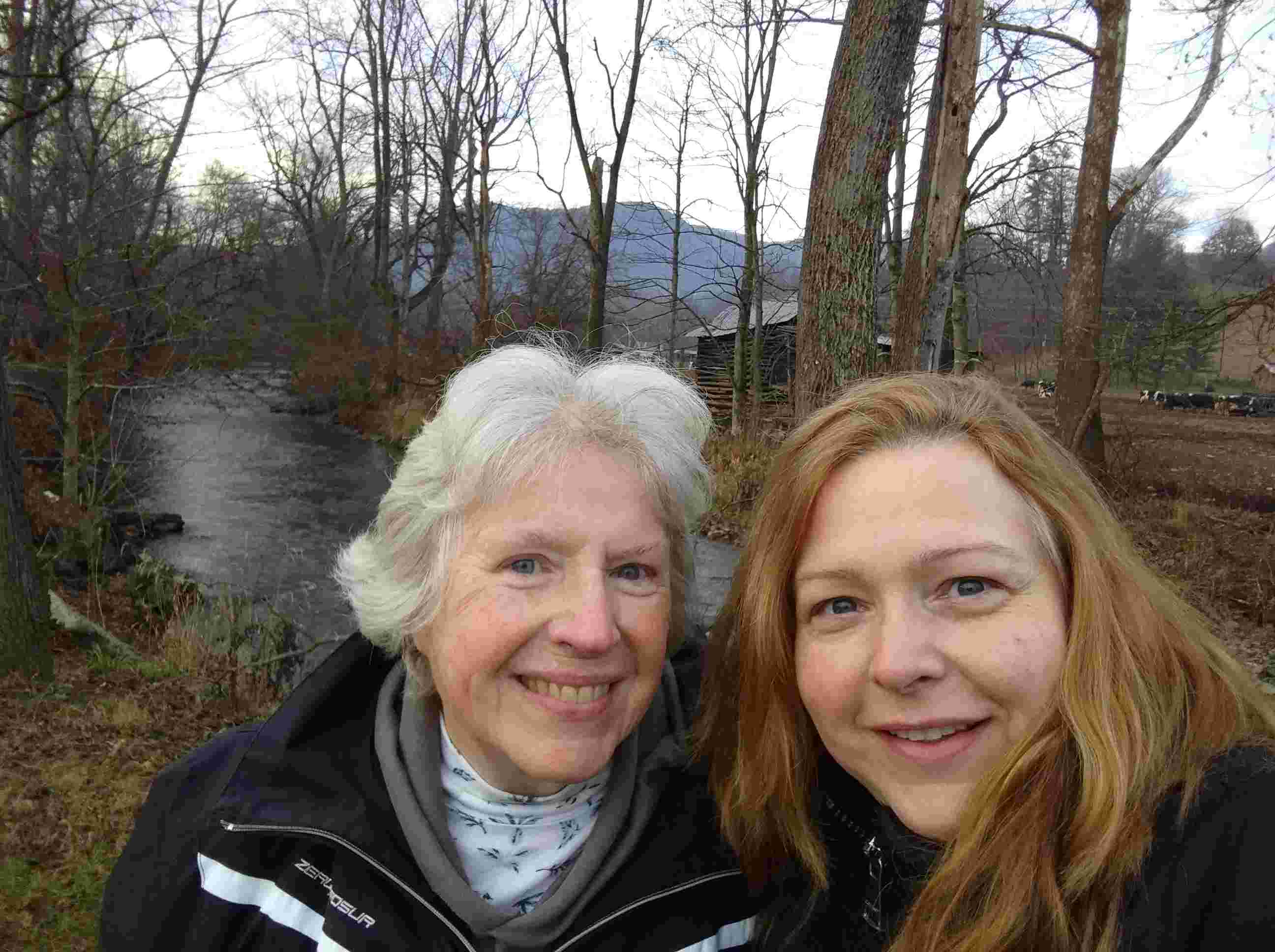 I love the photo of you and Lise at the creek! And cows in the background–I love cows, and I do not recall having seen them in earlier photos. You and Lise look so much alike! Did she get her red hair from you?