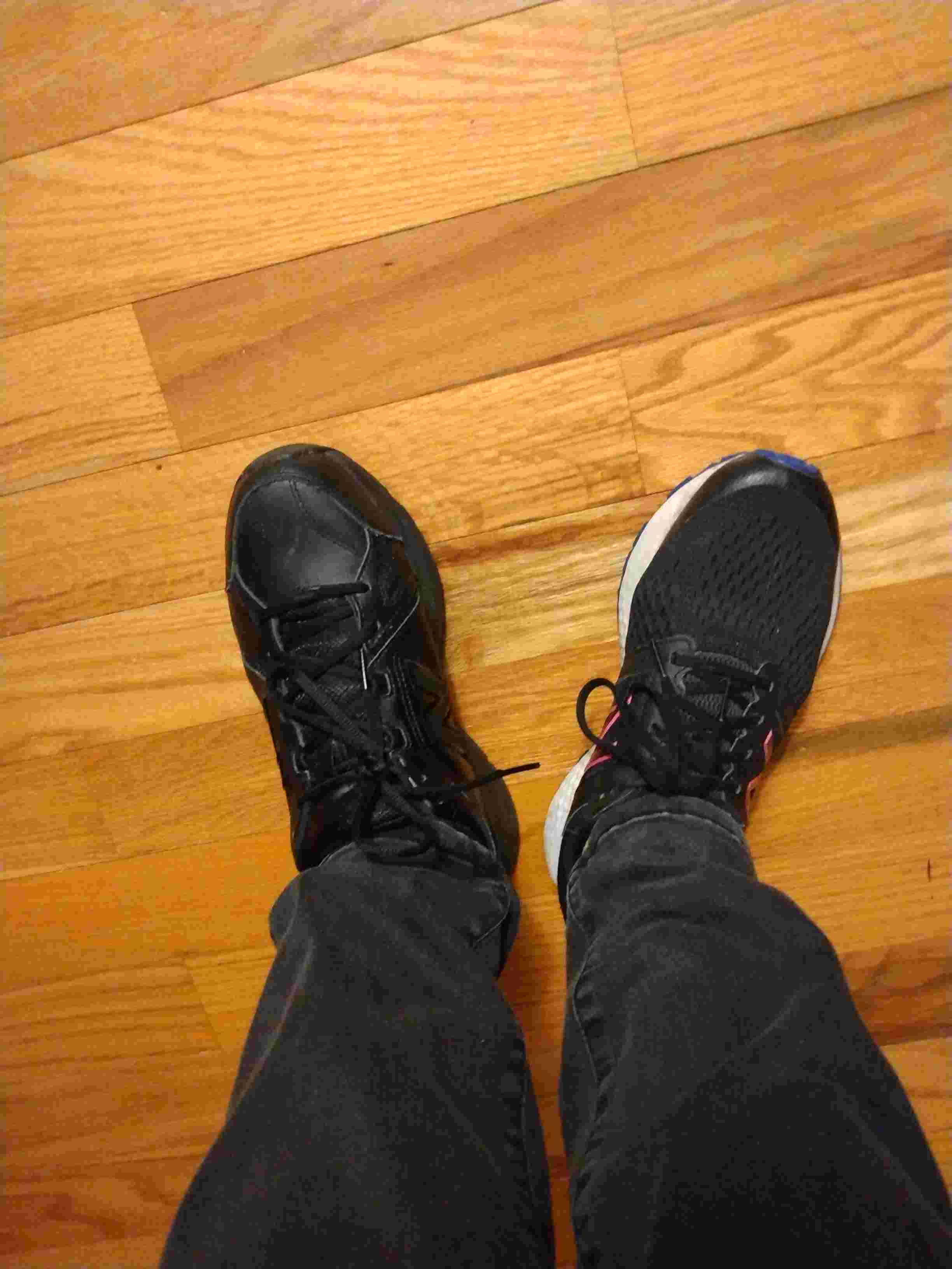 Two different shoes: I (P.) was 11 and gabbing in a group of neighborhood kids when I noticed my mistake. π« I turned and ran home to a chorus of “WHERE ARE YOU GOING?” Miraculously none of them had noticed. π