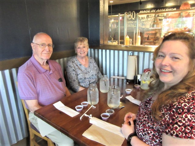 The day before Lise’s departure, we met brother Bob and Beth at a barbecue restaurant halfway between our homes. It was a lucky find. Not only was the food delicious, but they didn’t mind that we sat there chatting for several hours.