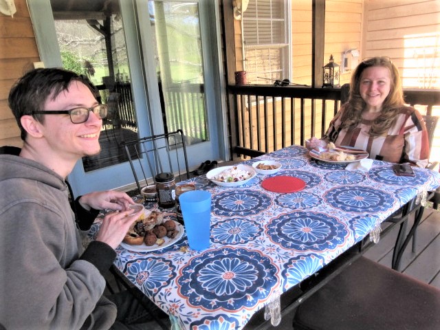 The day Lise left, we had lunch on the porch. We let go gradually, texting from here to Asheville airport and Atlanta before her departure to Amsterdam and Copenhagen.