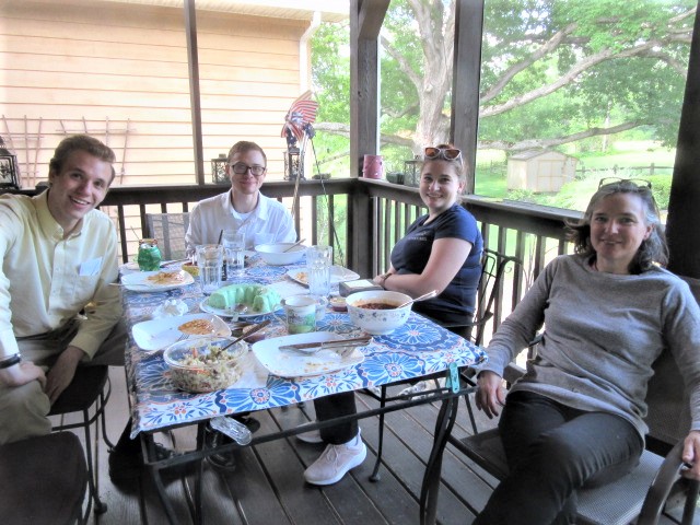 The first full day daughter Kate was here, her son Nathaniel and girlfriend Sarah came to visit. What a marvelous day we had! We celebrated David’s birthday at the end of a late lunch.