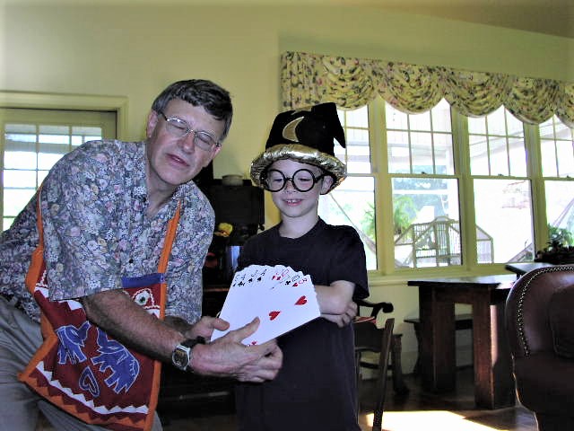 Here is a flashback to 2004. Myra is talking to my grandson David and daughter Lise. Rick is performing a Harry Potter trick for young David. The dates changed, but the people remain as warm and caring as ever. The magic stays up to date, as well.