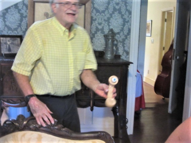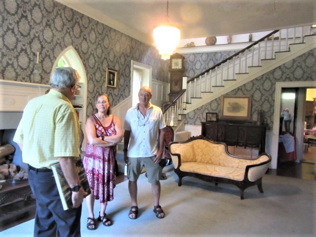 After lunch, Rick was beginning to tell the history of the house and its owners to Chrissie and Chris in the living room. Thus began the most thorough tour of the house I’d ever witnessed. Though standing at the front door, I’m lurking in a mirror behind and to the right.