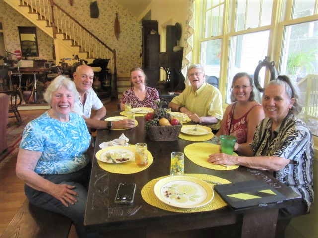 Niece Kathie took this photo that shows the group around the table. I’m on the left, then comes nephew Chris, daughter Lise, Rick, niece Chrissie, and Myra.