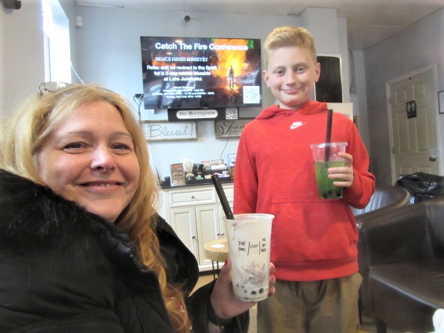 As we drove away, I commented on seeing a shop serving Bubble Tea. We had passed it when Logan exclaimed about it. Lise asked if we should turn around and get some. When the answer was yes, please, she immediately turned around, drove back, and parked. The two ladies inside had no other customers and seemed to enjoy serving us. We loved all the choices. We sat in soft chairs to drink, which is when Logan wandered over to the counter and read the labels. He said, “My mom likes lavender.” Lise offered to buy a drink for Shawn, who was home recuperating from shoulder surgery. She let us know that it tasted good to her.