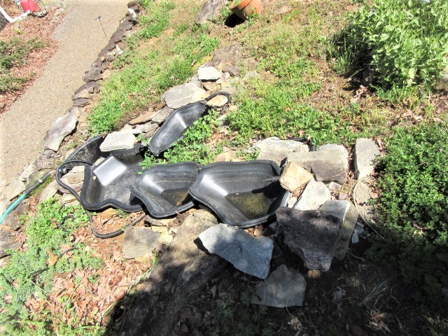 I don’t normally celebrate the first day of May, but I opened the waterfall this morning. As I write this, I’m sitting on the back porch where I can see AND hear it. John built it for me a year after we moved here, helped by grandsons David and Nathaniel. Two years ago brother Bob and wife Beth helped me clean the pools, as well as choose and install a new pump and new hoses. Last year Chris Pollock connected the new hose to the splitter. As you can tell, this has always been a family project. This year I spent a part of a morning raking the leaves out of the water, and another morning bailing out the pools. Today I checked the pump, filled the lowest pool, and let the pump fill the rest. Soon I will see if neighbor D.’s offer still stands of putting the decorative slates back where they belong. She is an enthusiastic volunteer landscaper and says she enjoys working with stones. I would never be able to do what she does.