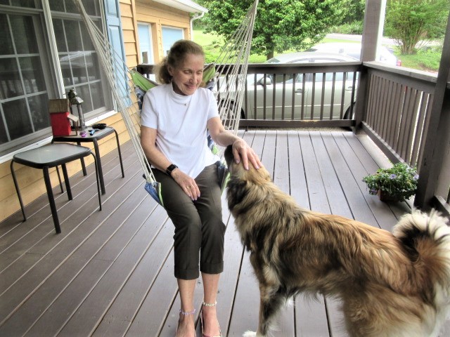 I wasn’t the only one who enjoyed this visit. They took two short walks to counterbalance the hours of sitting in a car. Out on the street they met neighbor Joyce and enjoyed talking to her. I noticed a big difference in Kacey. She didn’t ask to go outside while they were here! She didn’t want to miss a moment of being with them. Barbara should not have touched the dog because of allergies, although she did pet her. Thom made up for it, paying lots of attention to her. She adored him.