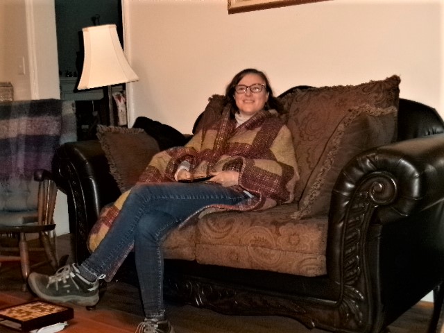 We reclaimed the living room after Kacey left by removing furniture covers and putting pillows back in place. Kate got chilled while we chatted, so she wrapped herself in a blanket. That was Kacey’s favorite place, where she could monitor the neighborhood by simply raising her head. I thought that worth remembering, and my memories are increasingly preserved with photographs.