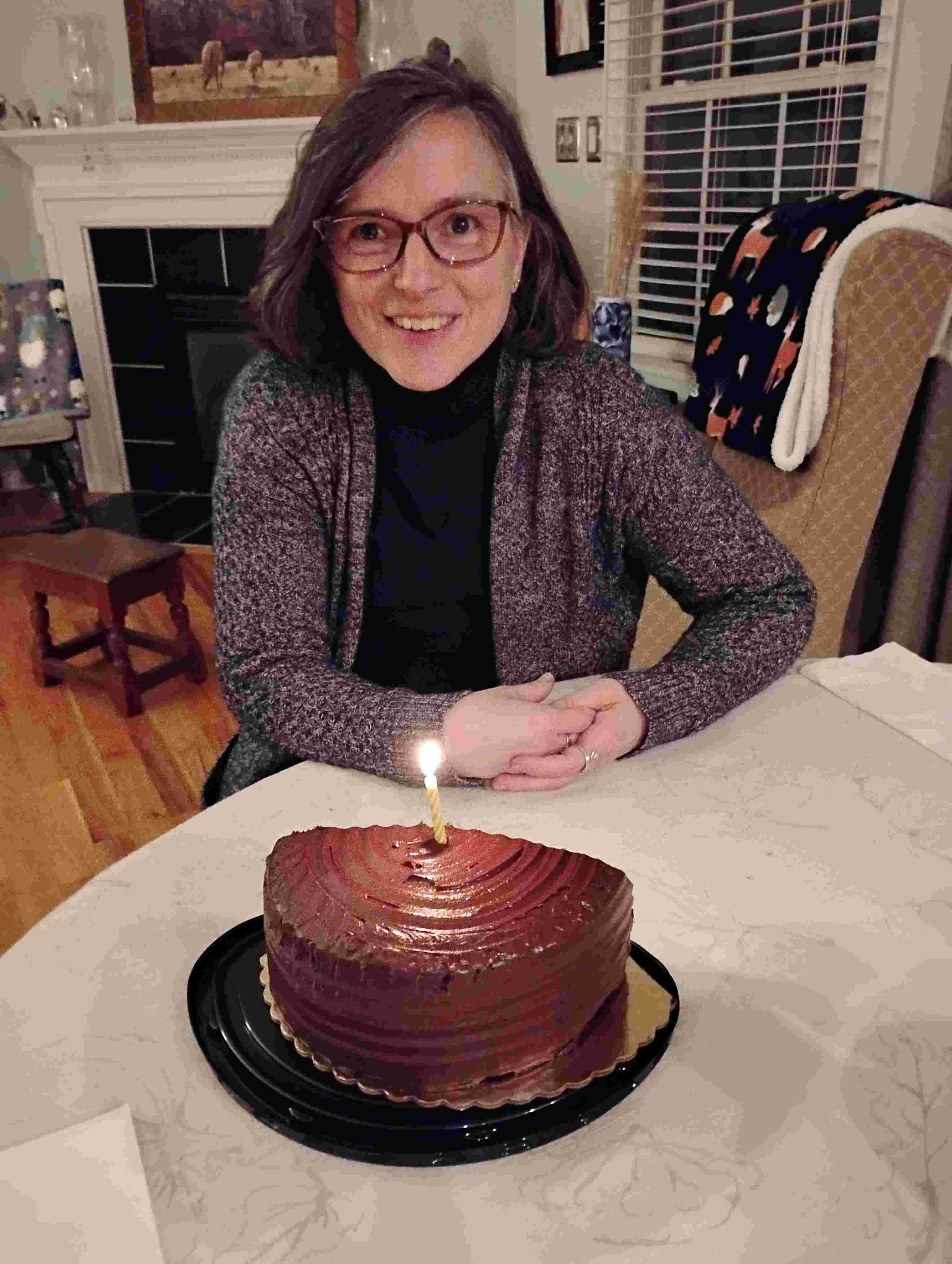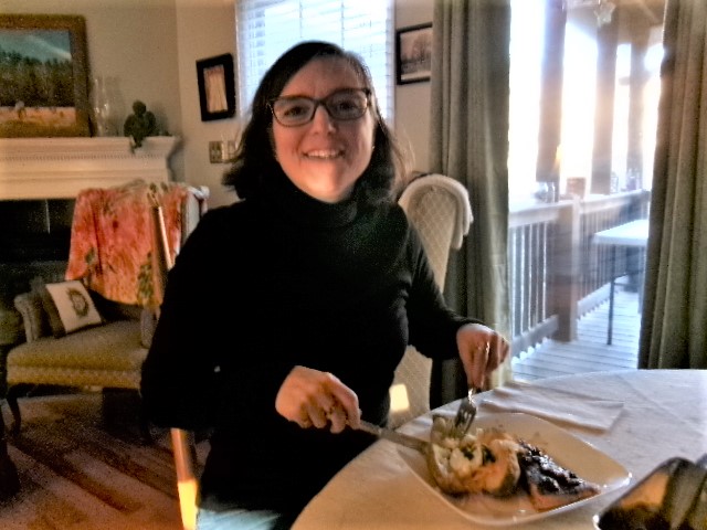 Daughter Kate was able to come a third time this year, and she drove down the day before her birthday. It’s a brutal drive to do in one day. After a good night’s sleep, she was ready to celebrate. I prepared salmon and a baked potato for our main meal.