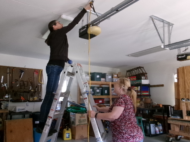 Leaving day is never fun. Sight-seeing trips are over, and you won’t start any new project. Magda had packed and was ready to go. I can’t remember why we were in the garage, but Lise noticed an extension cord plugged into the ceiling. She thought it would be a good idea to take it down in case we used that part of the garage. The girls moved the ladder in place, figured out how to adjust it, and Magda unplugged the cord easily. That was a marvelous preemptive fix.