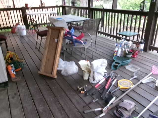 When the neighbors were together on my porch, I hoped no one would notice that I hadn’t cleaned the spot where I store garden tools. Everything else had been swept or wiped down. As I walked near the messy spot, Bob asked, “What is all this?”
